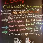 Eh! Septembre est arrivé!!!! Sans se presser!!!! Avec des nouveautés par contre!!! Ah oui!!La sélection de vins au verre « côté bar » est désormais en PROMOTION « côté cave ».Jeudi 10 septembre : soirée P’tit CancaleJeudi 24 septembre : soirée Chef Fournier Samedi 26 septembre : On se marie!!! ET oui!!! Après 14 ans de vie commune, on …
