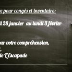 Cher amis, chers clients,Suite à la crise sanitaire et aux décisions prises par notre gouvernement, l’activité » Bar à vin » de L’Escapade est stoppée jusqu’à nouvel ordre. Par conséquent, tous nos cours d’oenologie sont annulés et la validitée de nos chèques cadeaux sera prolongée d’autant.Cependant, notre activité de caviste pourra peut-être être maintenue..Nous vous en …