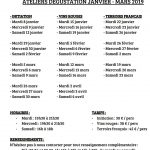 Voici le planning des ateliers dégustations disponible pour le 1er trimestre 2019.Si vous êtes intéressé, appelez nous directement à la cave au 0235419983. A bientôt!